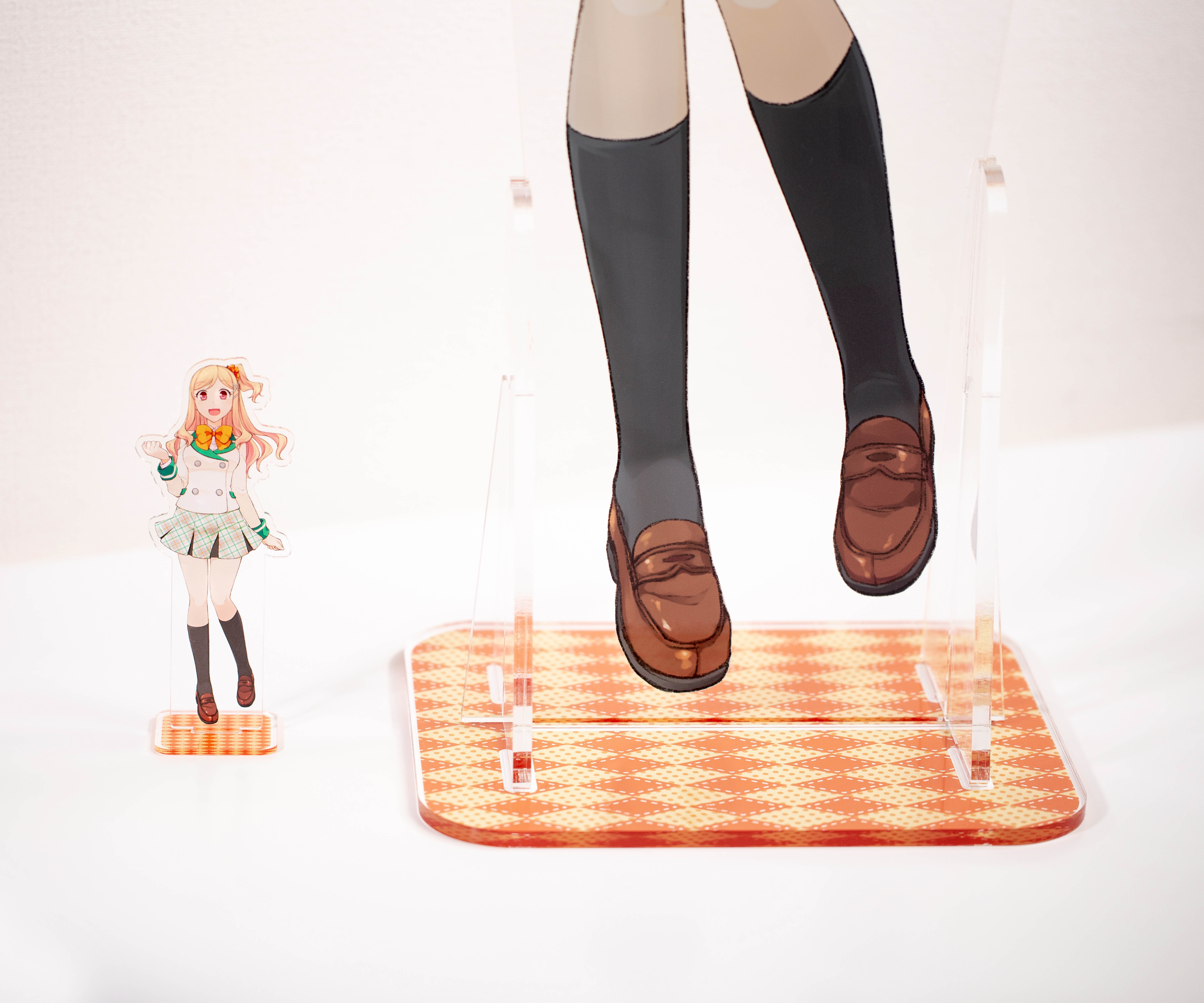大きなアクリルスタンドを 1個から製造が可能 台座のデザインできます 制作ガイドはこちら